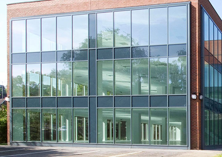 Curtain walls may be designed as “systems” integrating frame, wall panel, and weatherproofing materials. Steel frames have largely given way to aluminum extrusions. Glass is typically used for infill because it can reduce construction costs, provide an architecturally pleasing look, and allow natural light to penetrate deeper within the building. However, glass also makes the effects of light on visual comfort and solar heat gain in a building more difficult to control. Other common infills include stone veneer, metal panels, louvres, and operable windows or vents.